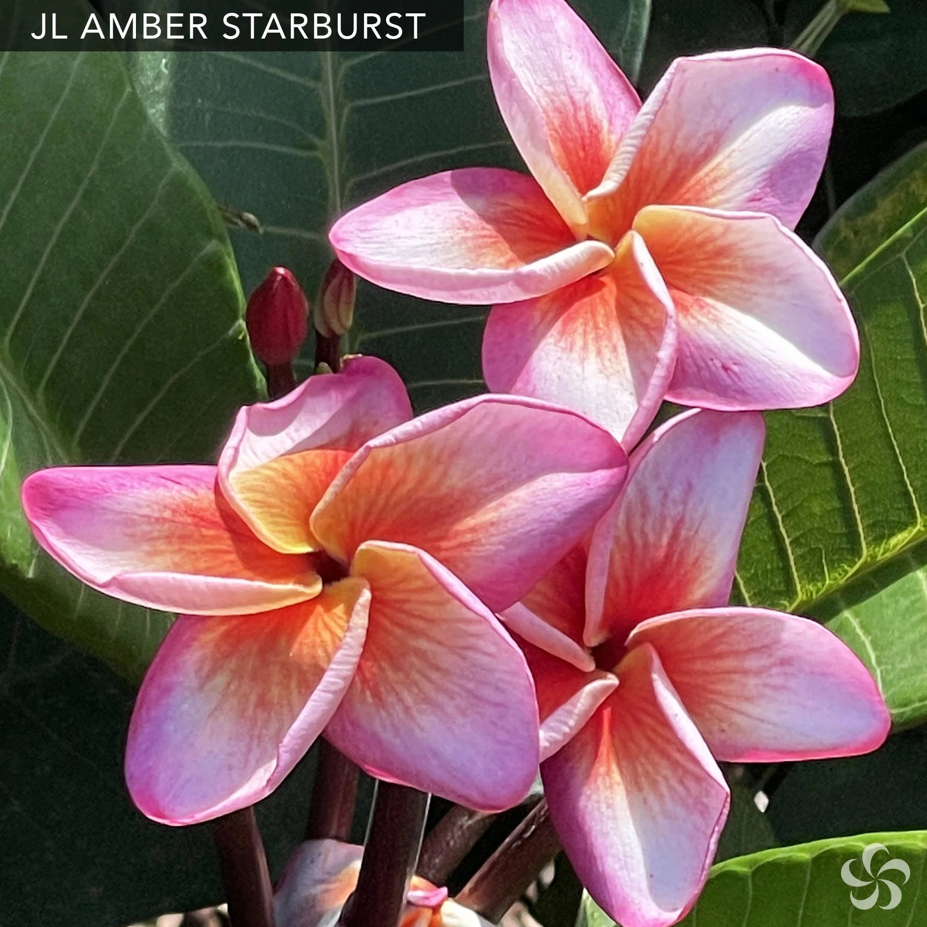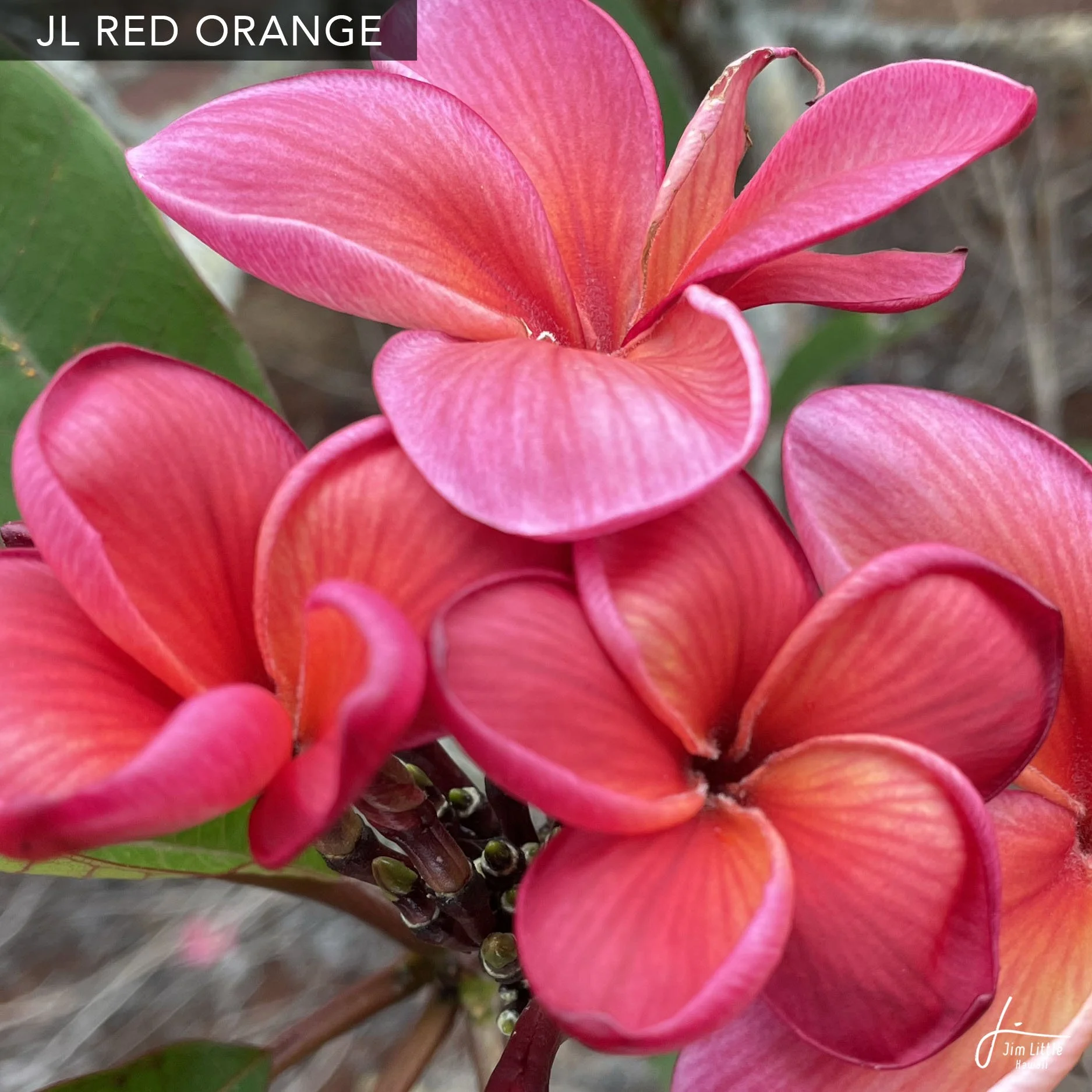 JL Orange Crush---$300---New releases for 2024 from Little Plumeria Farms. 4 inch flower with abundant blooms. Sweet fragrance. Overlapping orange and pink color petals with veins.