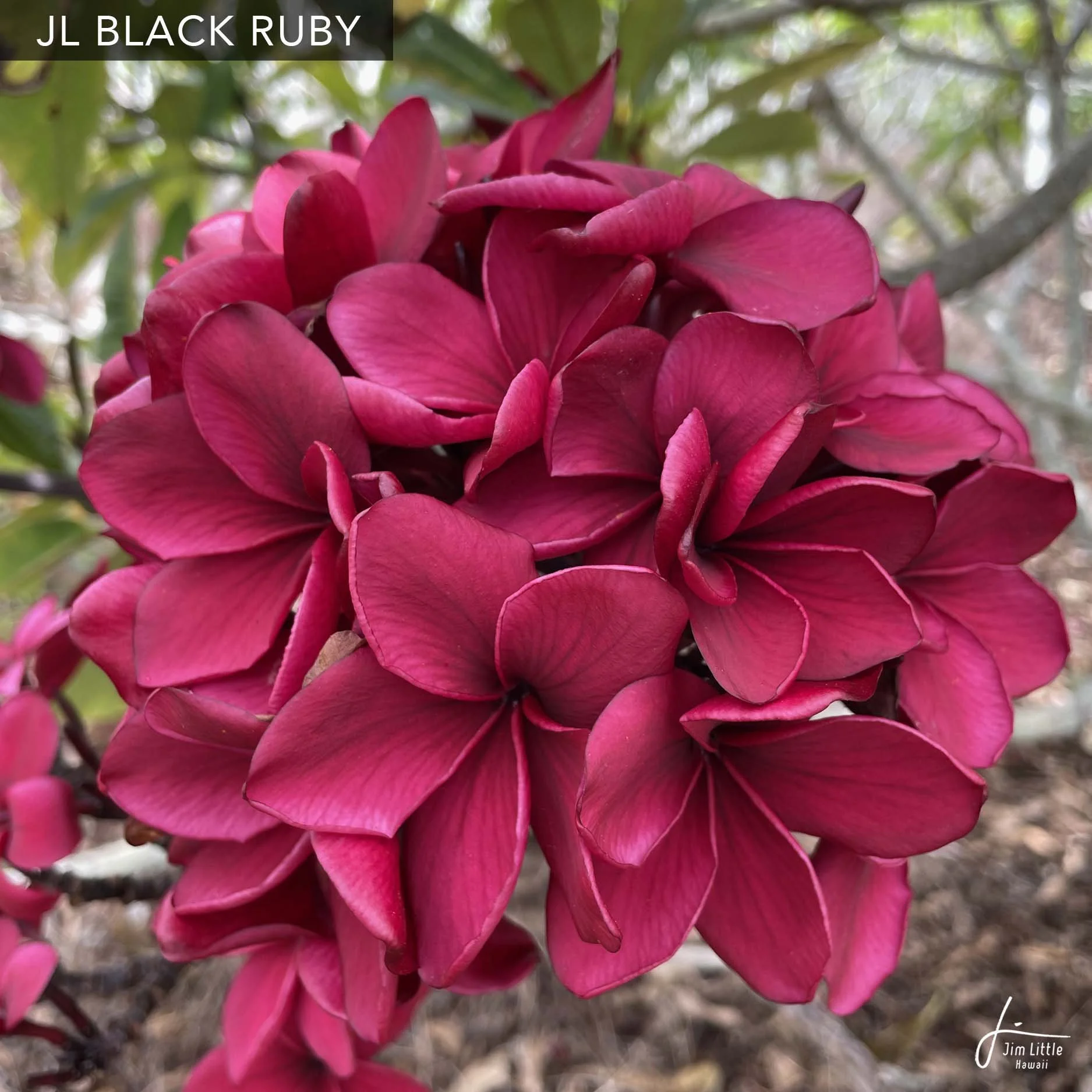 JL Bud Guillot---$400---This flower was named after Jim Little’s friend Bud Guillot who he met back in the 1980's on one of his first visits to his farm. They immediately started sharing stories about plumerias and their relationship never ended. Jim is delighted to name a JL cultivar for a man who gave endlessly in his passion to share the beauty of plumeria. This gorgeous flower is a seedling of the famous JL cultivar Metallica showing it similarities. It has a beautiful yellow burst that fades to a red purple color. The fragrance is sweet with a large well balanced growth habit.